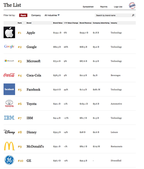 美国《福布斯》杂志发布了2018年全球最具价值品牌100强排行榜,苹果连续八年蝉联第一,品牌价值高达1828亿美元!