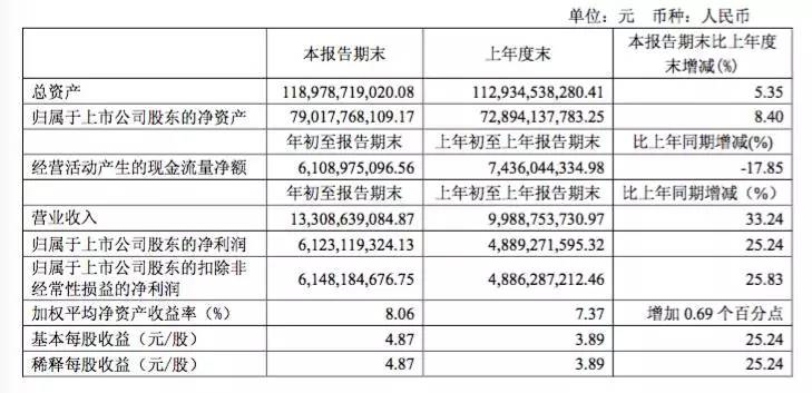 营业收入133.08亿,同比增长33.24%,净利润61.48亿,同比增长25.83%。去年同期,这两个数字分别是16.9%和11.9%,增速双双翻倍!双双录得如此高的增长,冠领行业,既是情理之中,也在意料之外。预收款189.8亿,也就是收了这么多钱还没有发货。